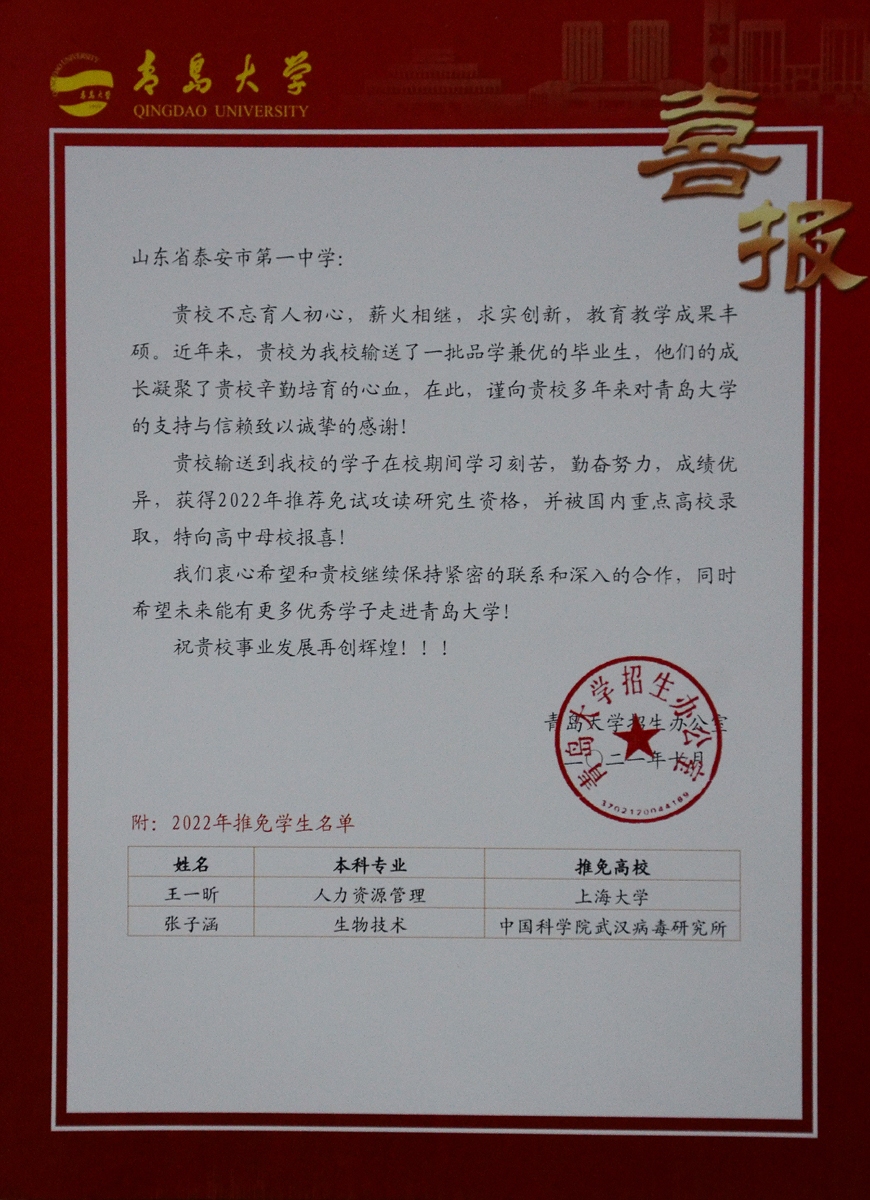 青岛大学喜报