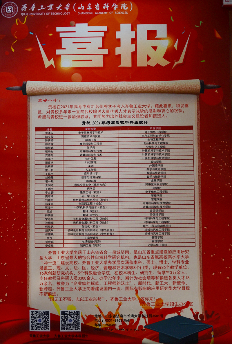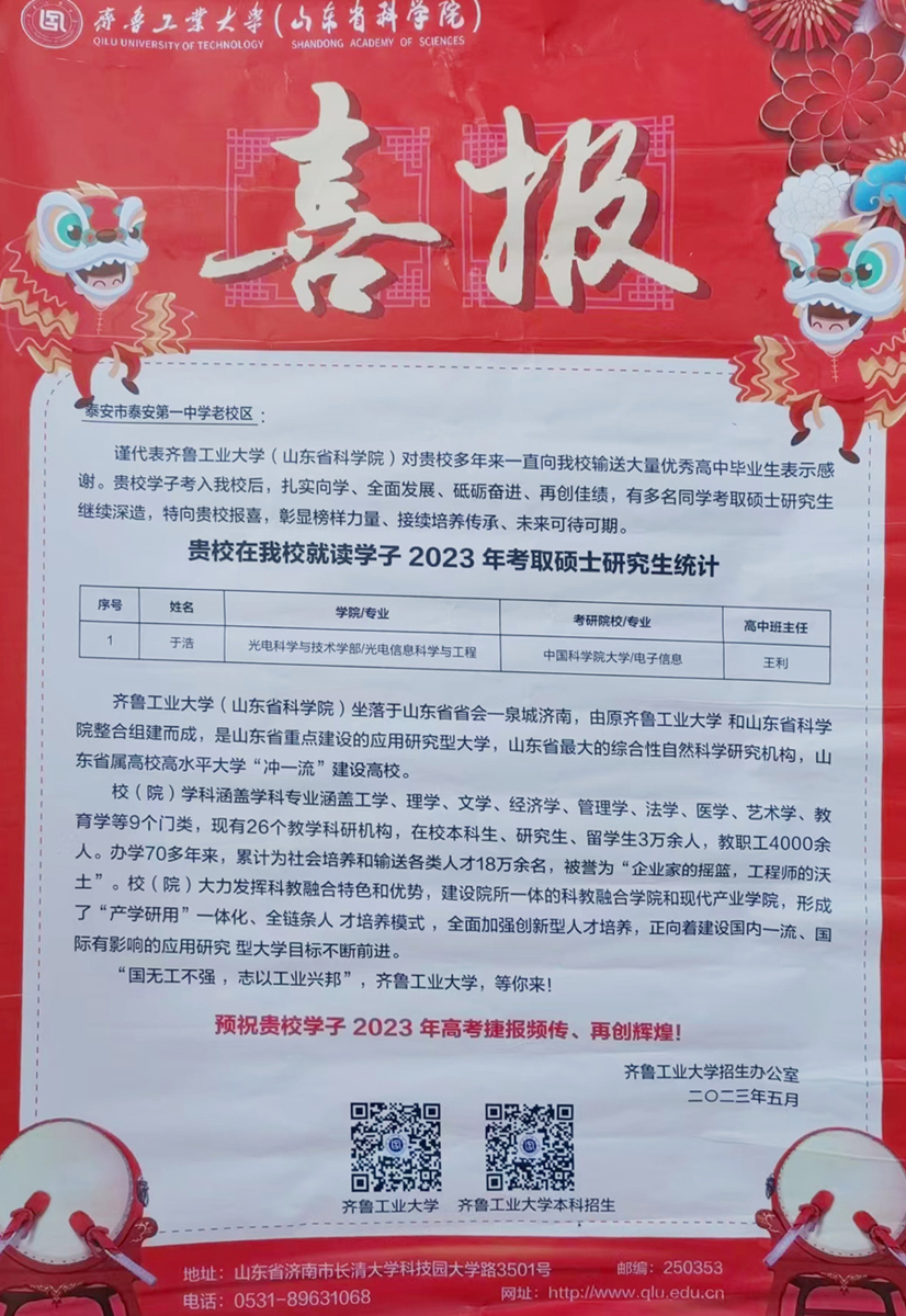齐鲁工业大学喜报