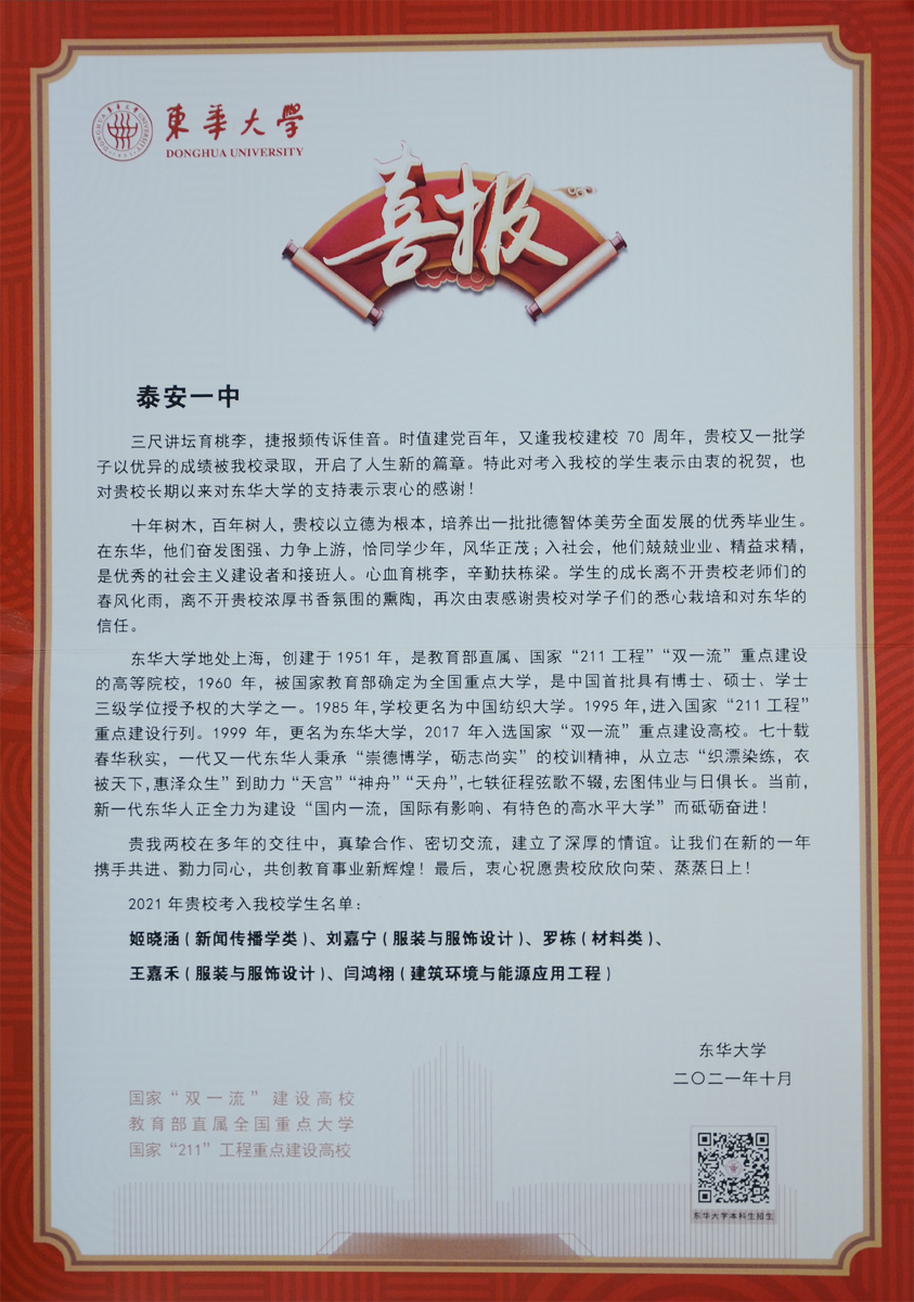 东华大学喜报