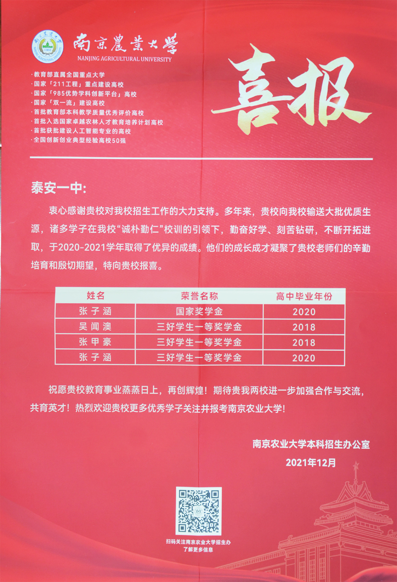 南京农业大学喜报