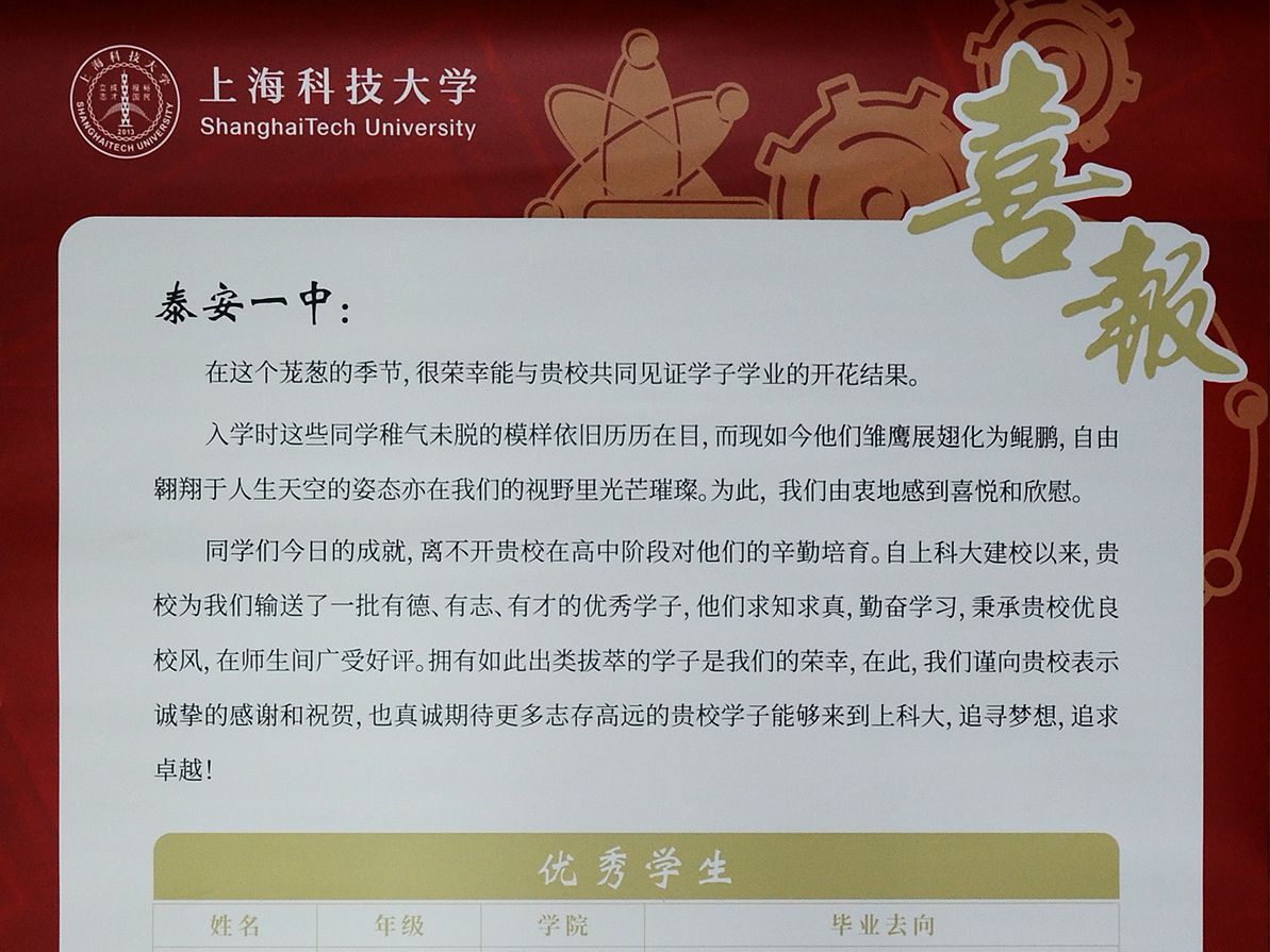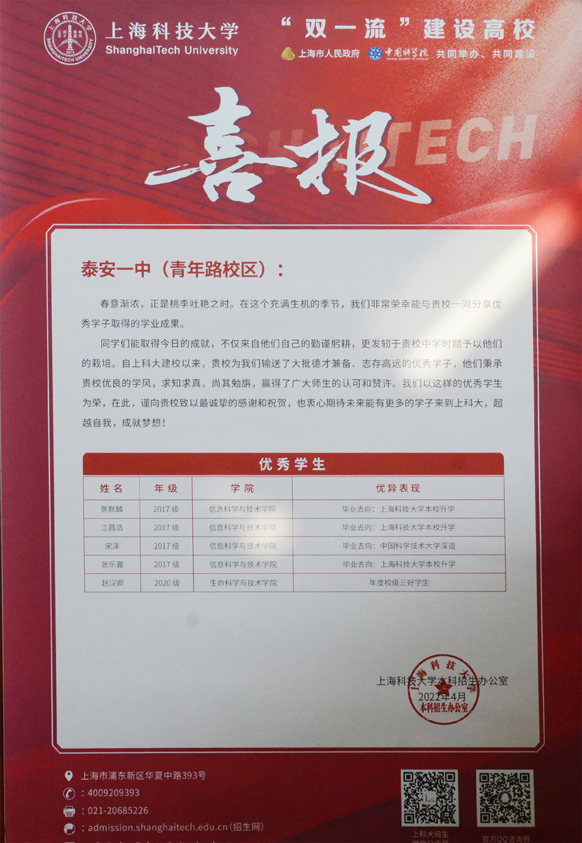 上海科技大学喜报