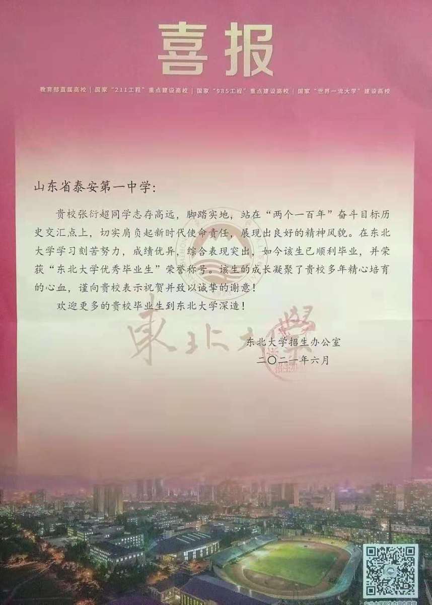 东北大学喜报