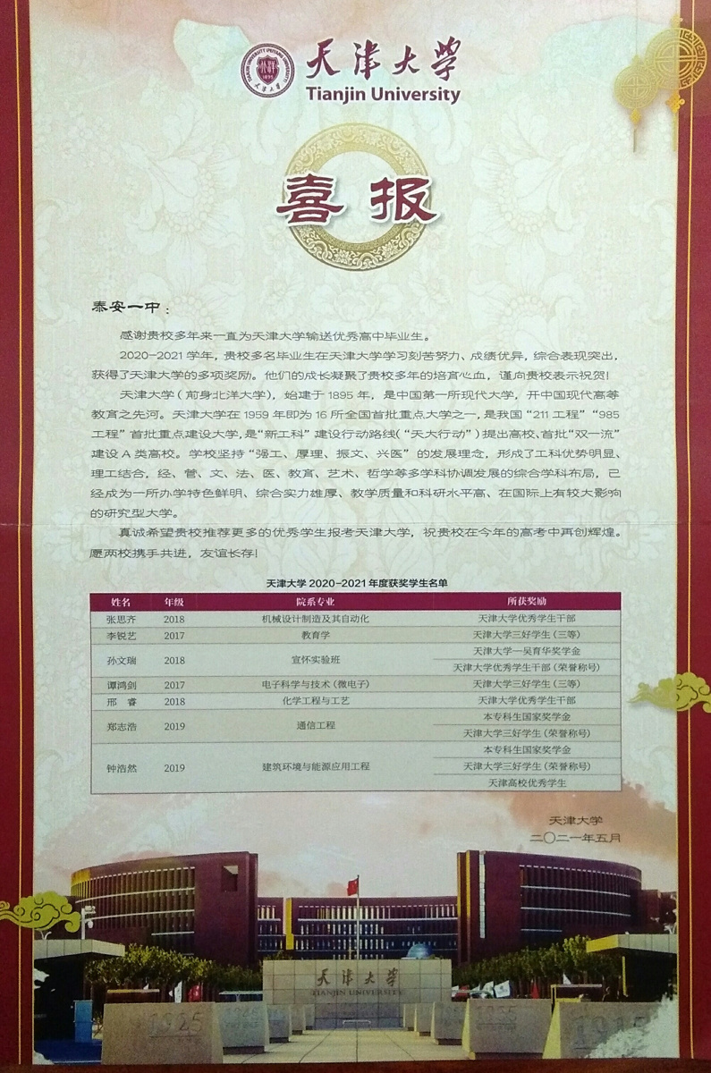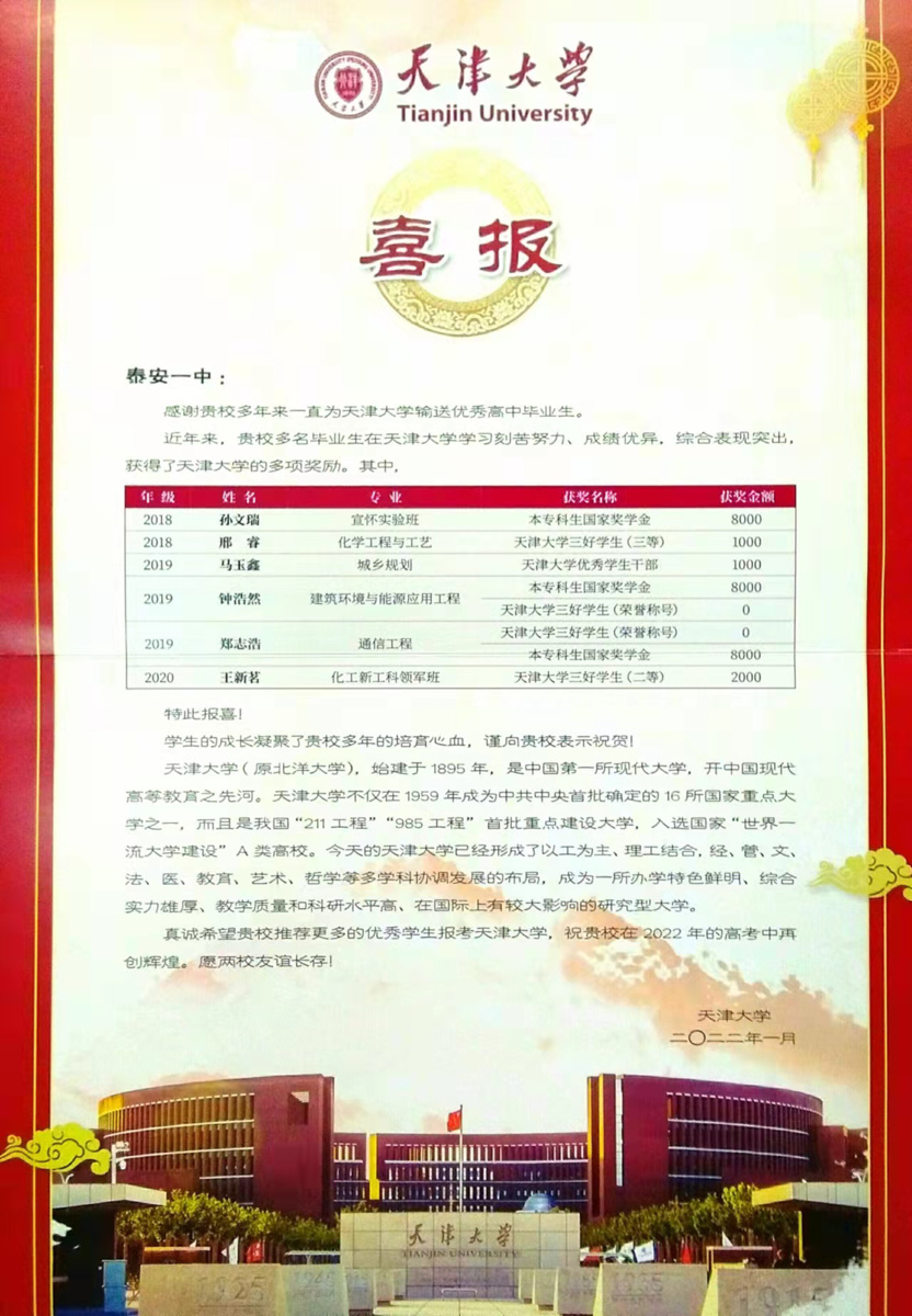 天津大学喜报