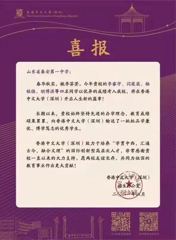 泰安一中成为香港中文大学(深圳)优质生源基地