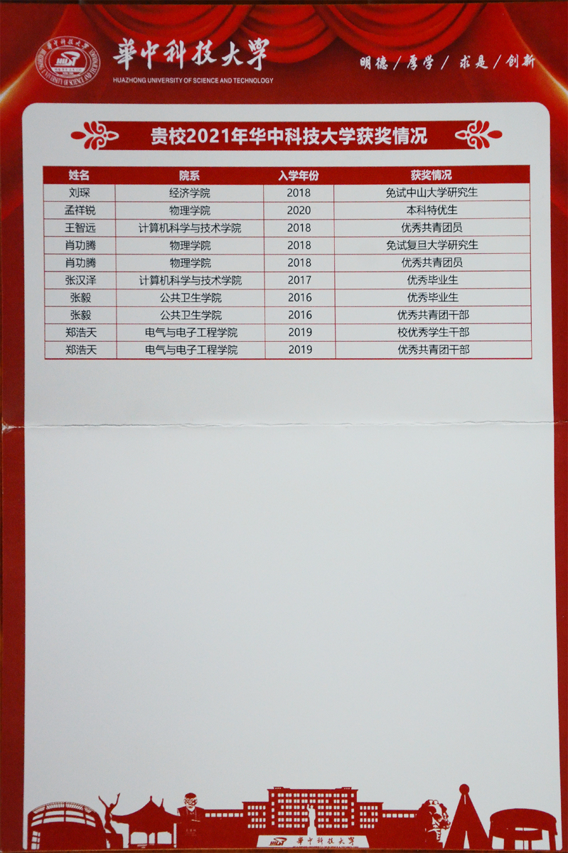 华中科技大学喜报