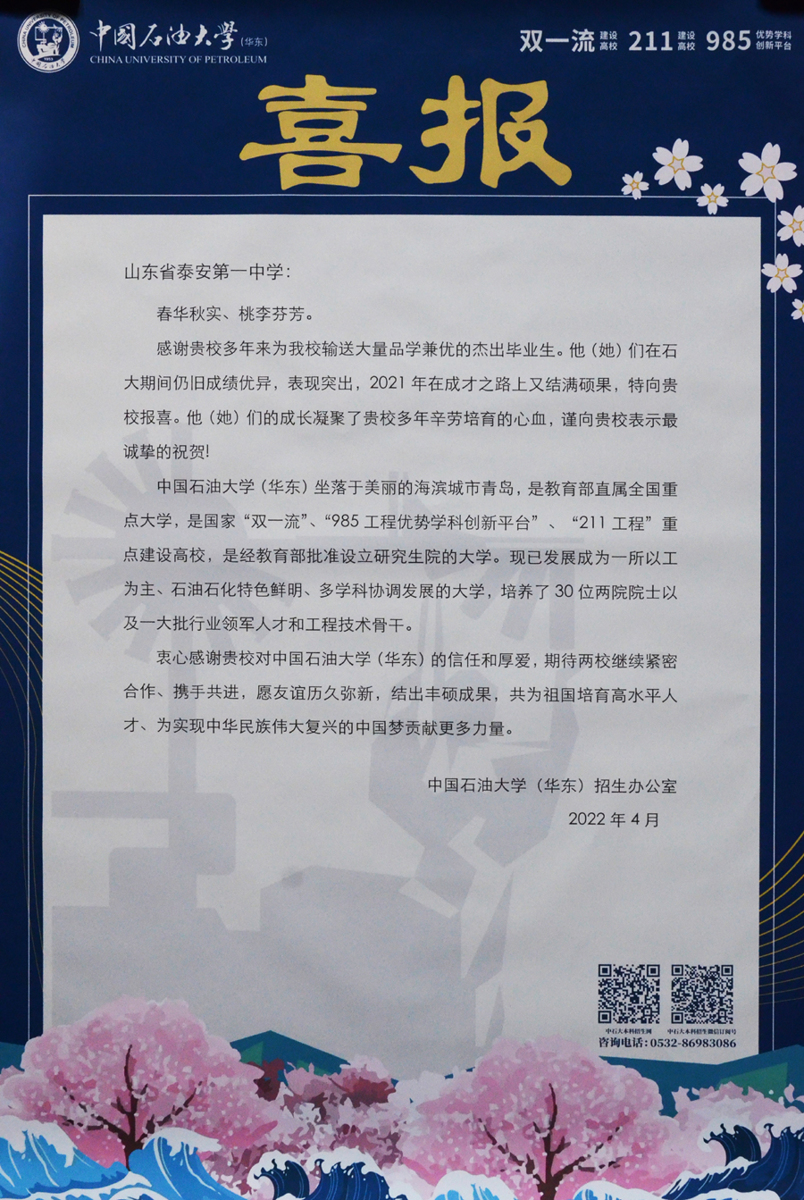 中国石油大学喜报
