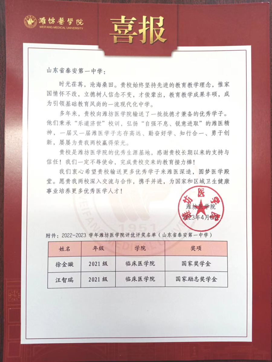 潍坊医学院喜报