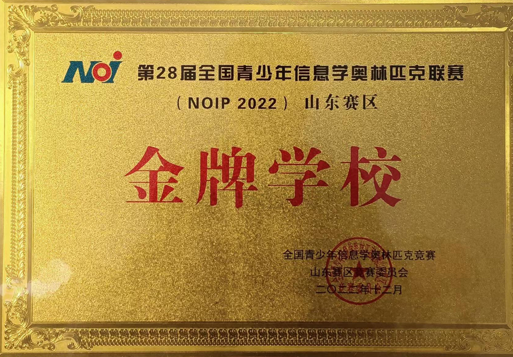 热烈祝贺我校获第28届全国青少年信息学奥林匹克联赛山东赛区“金牌学校”