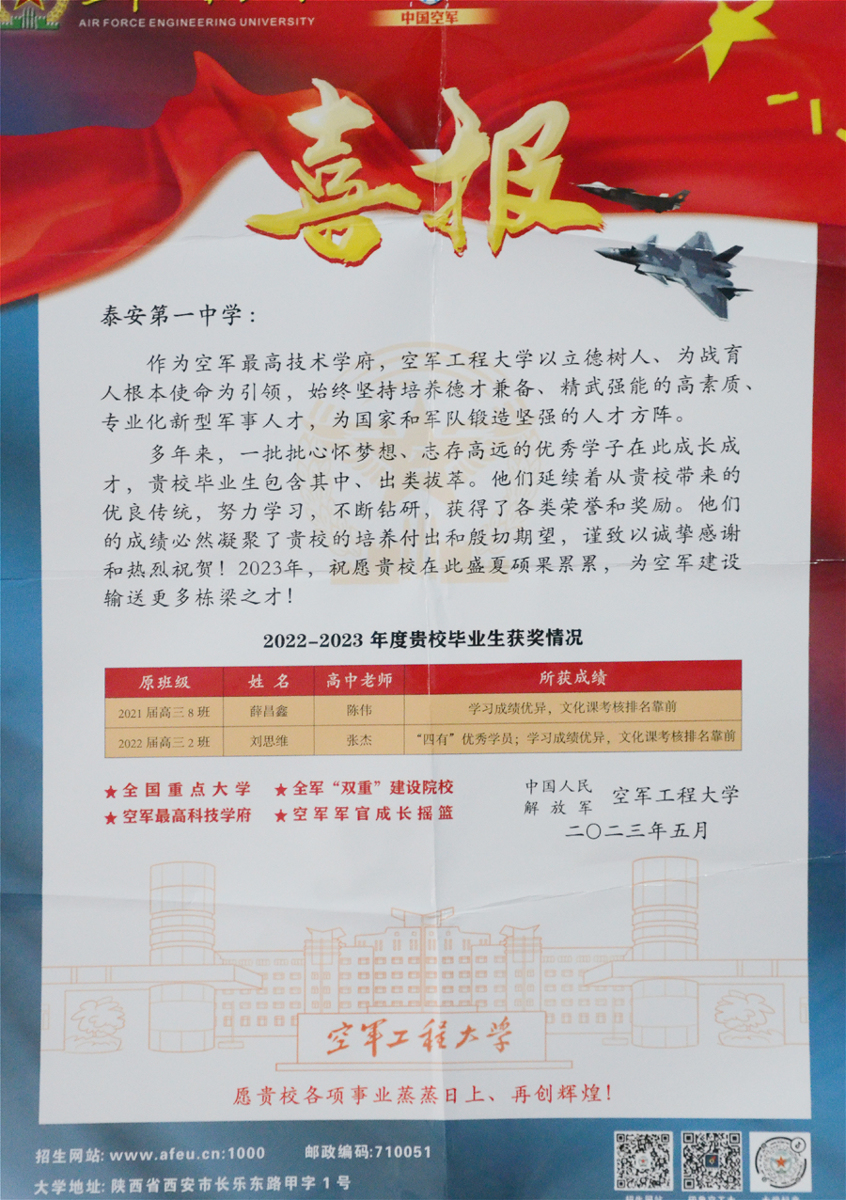 鹰击天风壮,鹏飞海浪春——泰安一中青年路校区201