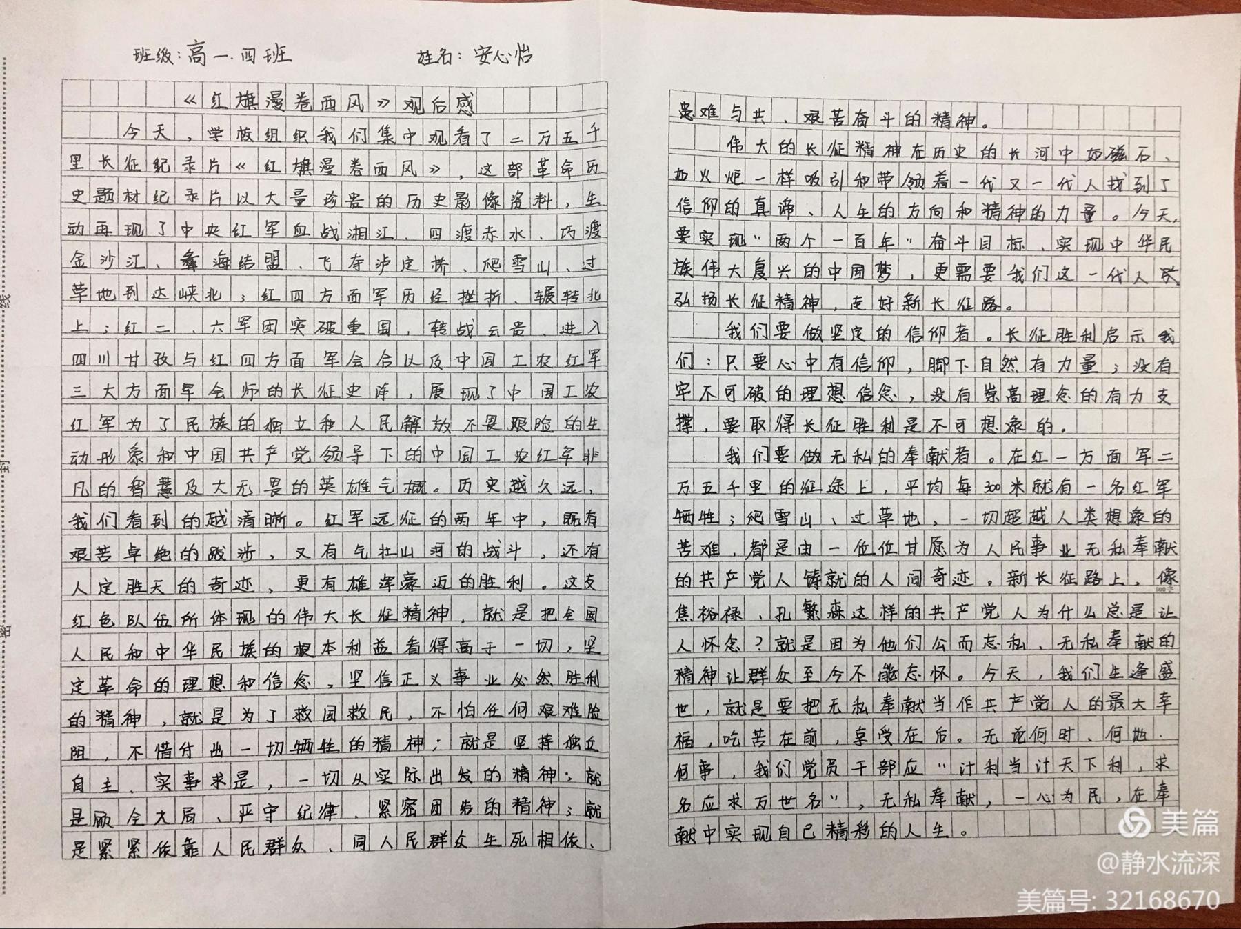 同学们被革命先辈的精神感染,观影认真、投入。 ![]() 《红旗漫卷西风》主要展现了中央红军血战湘江、四渡赤水、巧渡金沙江、爬雪山、过草地到达陕北;红四方面军长征时历经挫折,辗转北上;红二、六军团突破重围,转战云贵、进入四川甘孜与红四方面军会合等伟大历程。 ![]() ![]() 活动结束后,同学们互相交流分享观影体验,纷纷用文章写下自己的感悟,表达了对红军长征精神的由衷敬仰和对党奋斗历程的热情颂扬,并表示要用长征精神激励指导自己的学习和生活。