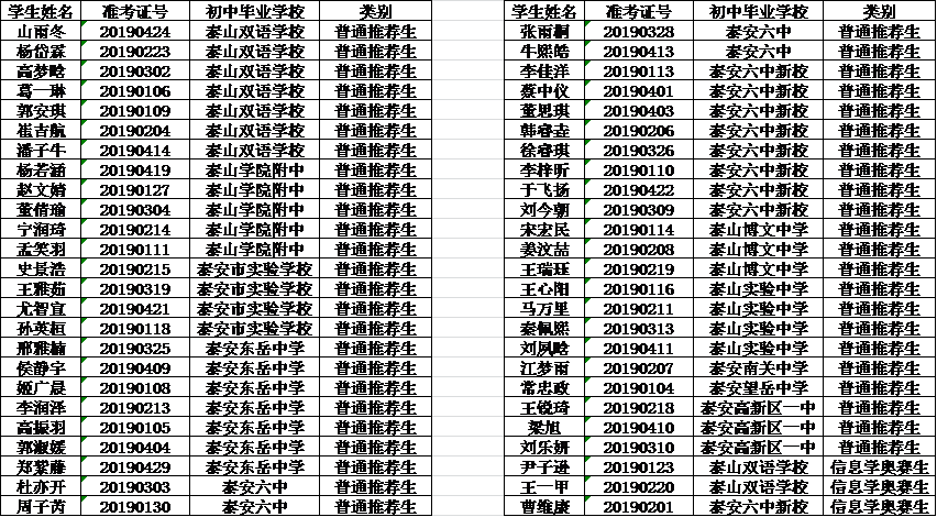 泰安一中2019年推荐生自主招生拟录取学生名单公示 |