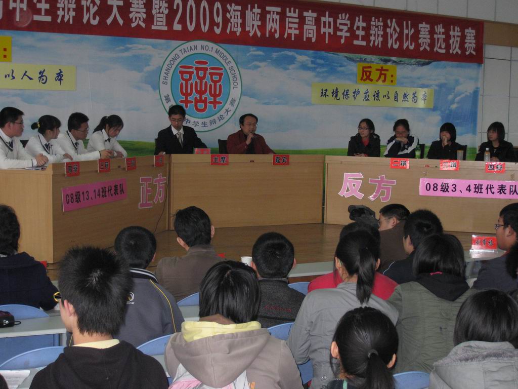 3月30日,进入“泰安一中第四届辩论大赛暨2009海峡两岸高中学生辩论比赛选拔赛”复赛的24名辩手,通过抽签重新组成了6支队伍。他们将在4月2日晚进行正、反双方的复赛阶段的对决。复赛结束后,将根据辩手得分高低产生8名“最佳辩手”进入决赛。
