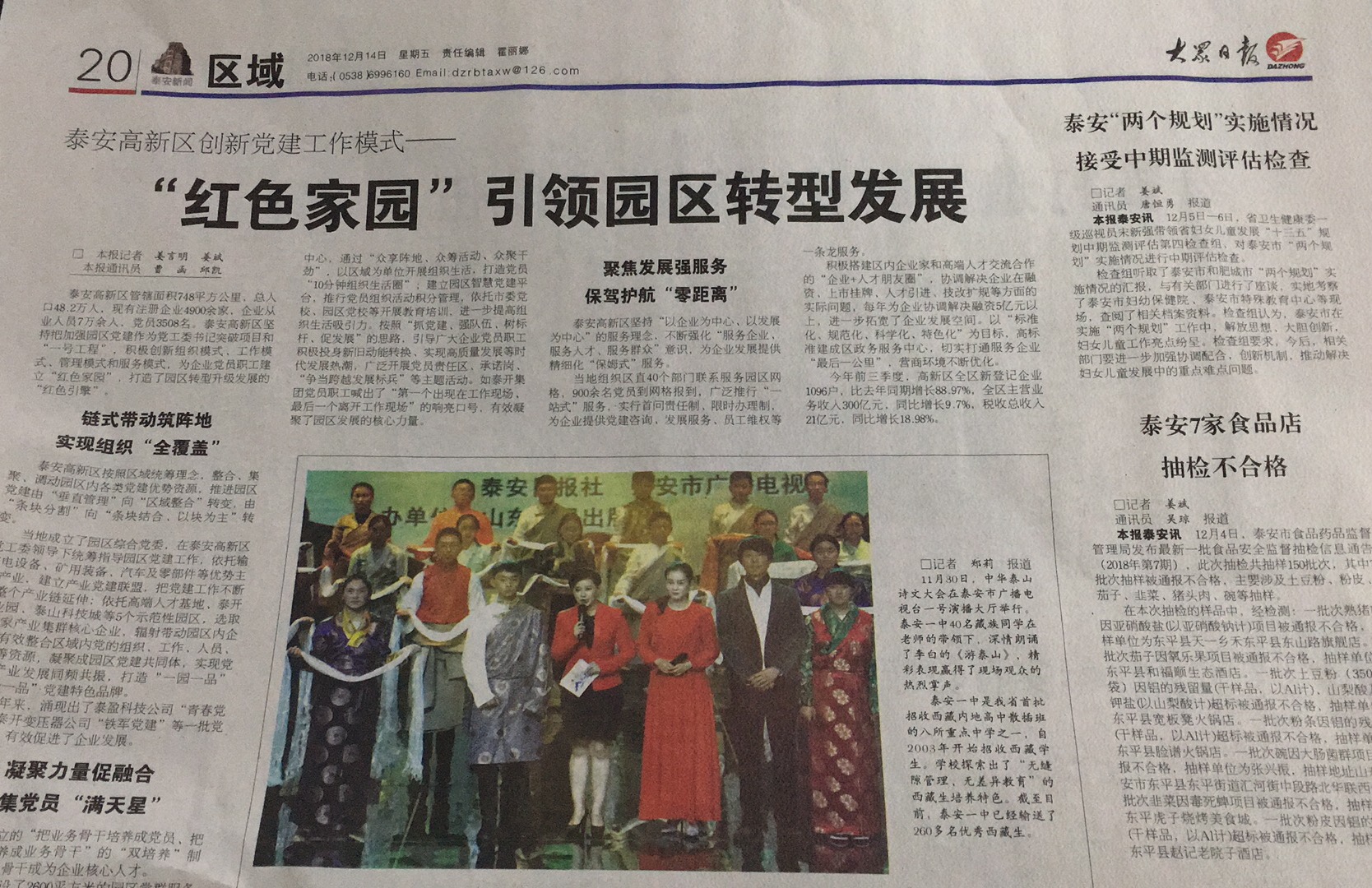 大众日报:泰安一中藏族同学深情诵读泰山