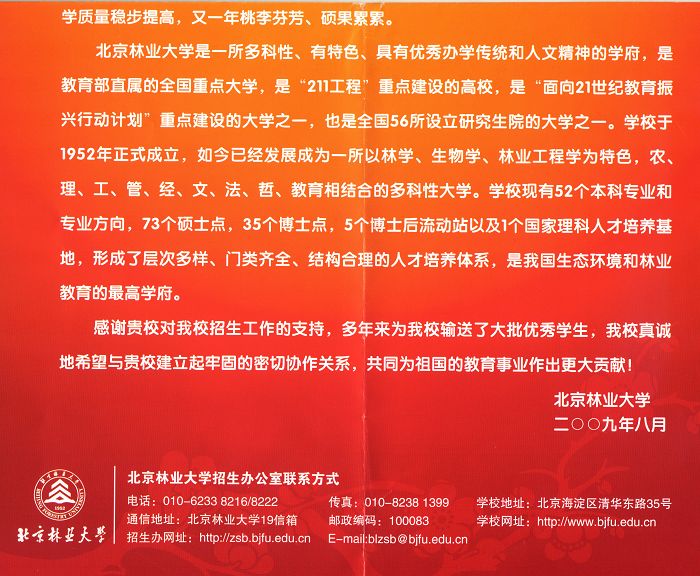 级学生谢易奇、王越、吴鞠、田学远、罗晶、庄仲达等六名同学以优异的成绩被北京林业大学录取。