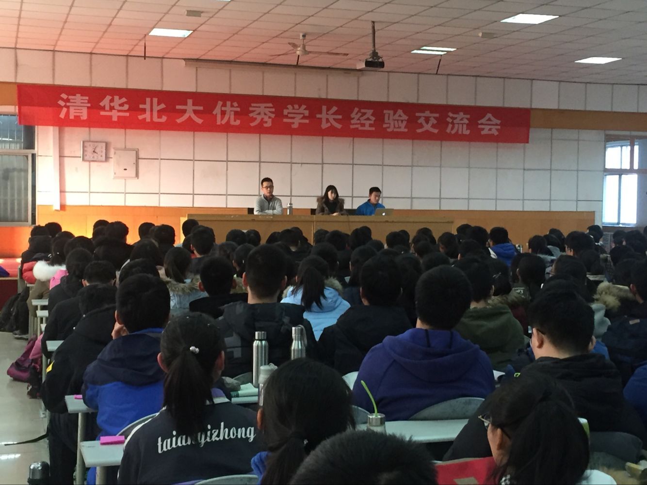 2日3日下午,泰安一中高三年级在泰山大讲堂召开了2017届优秀毕业生经验交流会。优秀毕业生代表徐尚青、李天宇、张浩然、纪然等同学为全体高三学生作了精彩报告,整个会场不时响起热烈掌声。