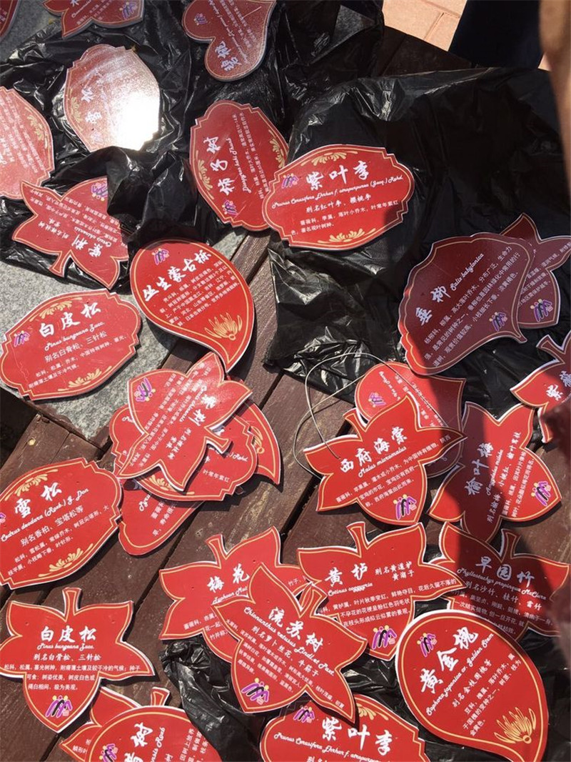 春天到了,草木生芽,百花齐放,一派欣欣向荣的景象。为了拓展学生们的视野,培养他们善于发现美的眼睛,近距离接触植物,泰安一中新校区生物组老师们开展了校园植物识别的活动,并为校园里每棵植物做了专属铭牌,悬挂到枝干上,供师生们驻足欣赏学习。