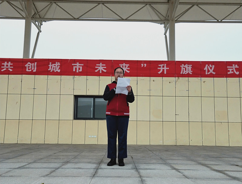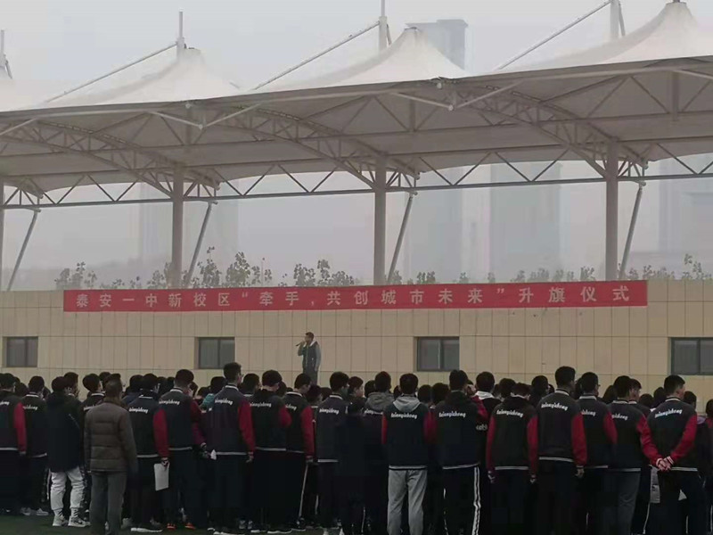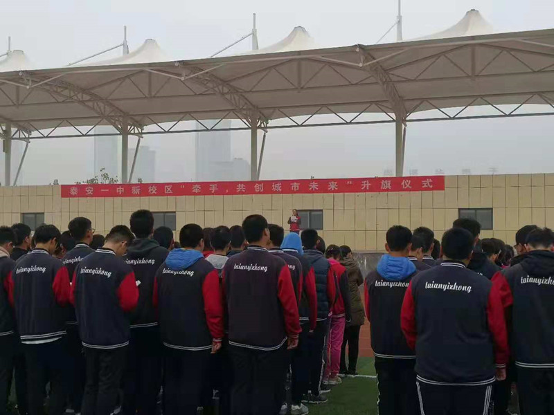 文明创建,你我有责——泰安一中新校区开展“牵手,共创城市未来”升旗仪式照片