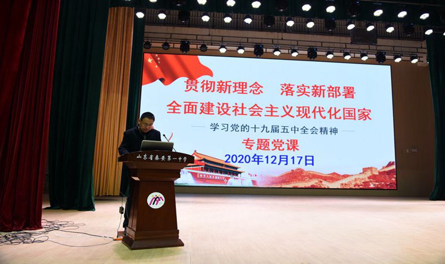 为深入学习习近平总书记在党的十九届五中全会上的重要讲话和全会文件精神,12月17日,学校党委书记靳启华为新校区全体党员干部上专题党课。