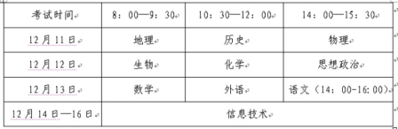 本次普通高中学业水平考试10个科目全部开考。各科目考试具体时间安排如下: