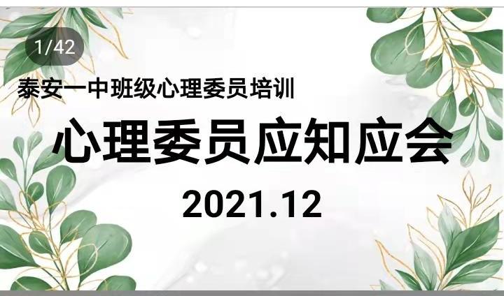 为完善我校心理健康危机预防与干预的长效机制,高效开展心理健康教育工作,营造“阳光心灵”校园氛围,2021年12月16日下午,泰安一中2021级全体心理委员在电教楼心理健康团体活动室进行了培训,心理咨询中心专职教师担任此次主讲。